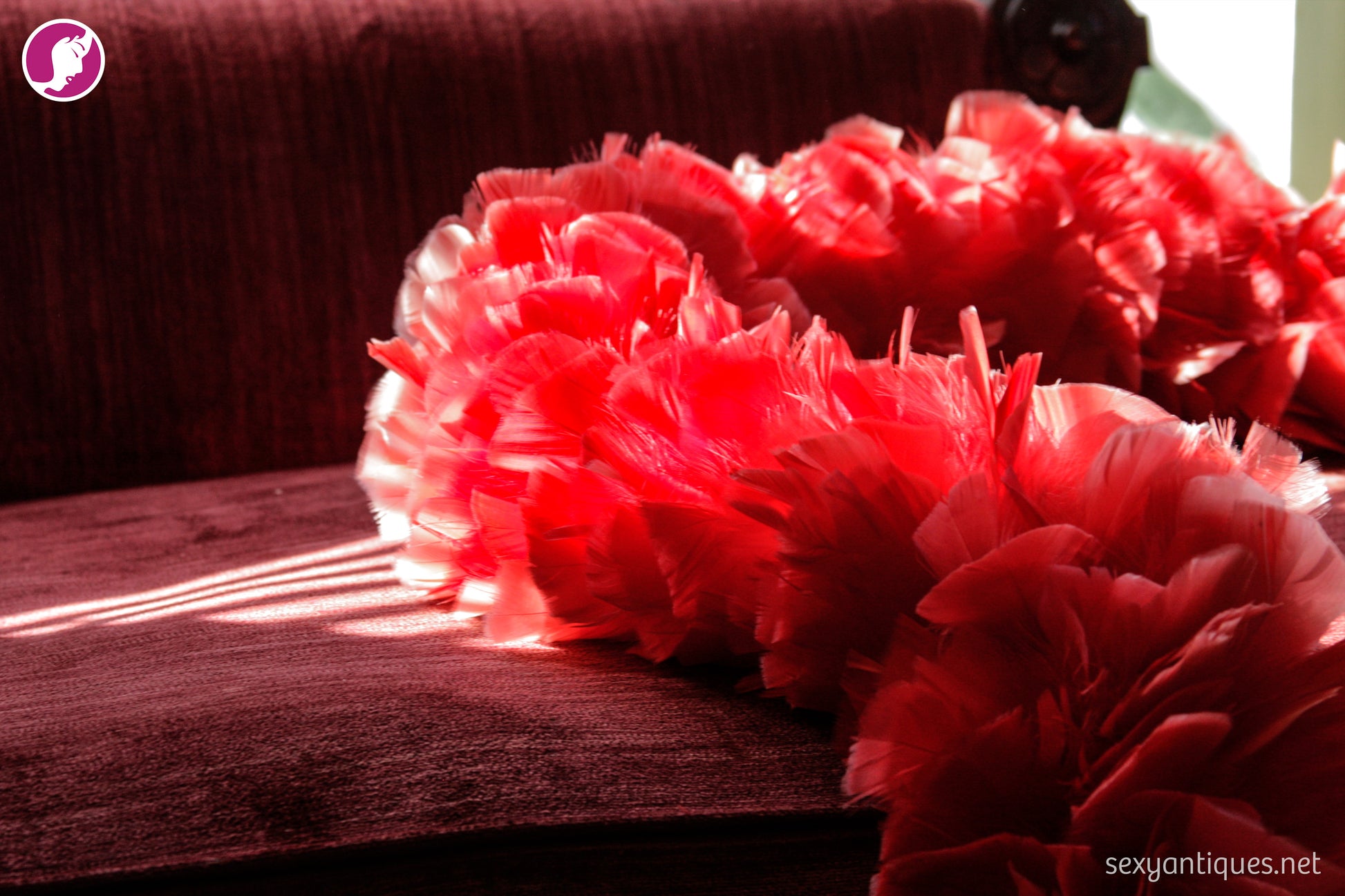 A bold statement of playful seduction. This vibrant red feather boa has been featured in our sensual photoshoots with model Star, draped across vintage furniture and skin alike. While not vintage or antique, it remains a striking photography prop and accessory. Perfect for boudoir, costume, or private indulgence, it brings passion and flair into any setting.